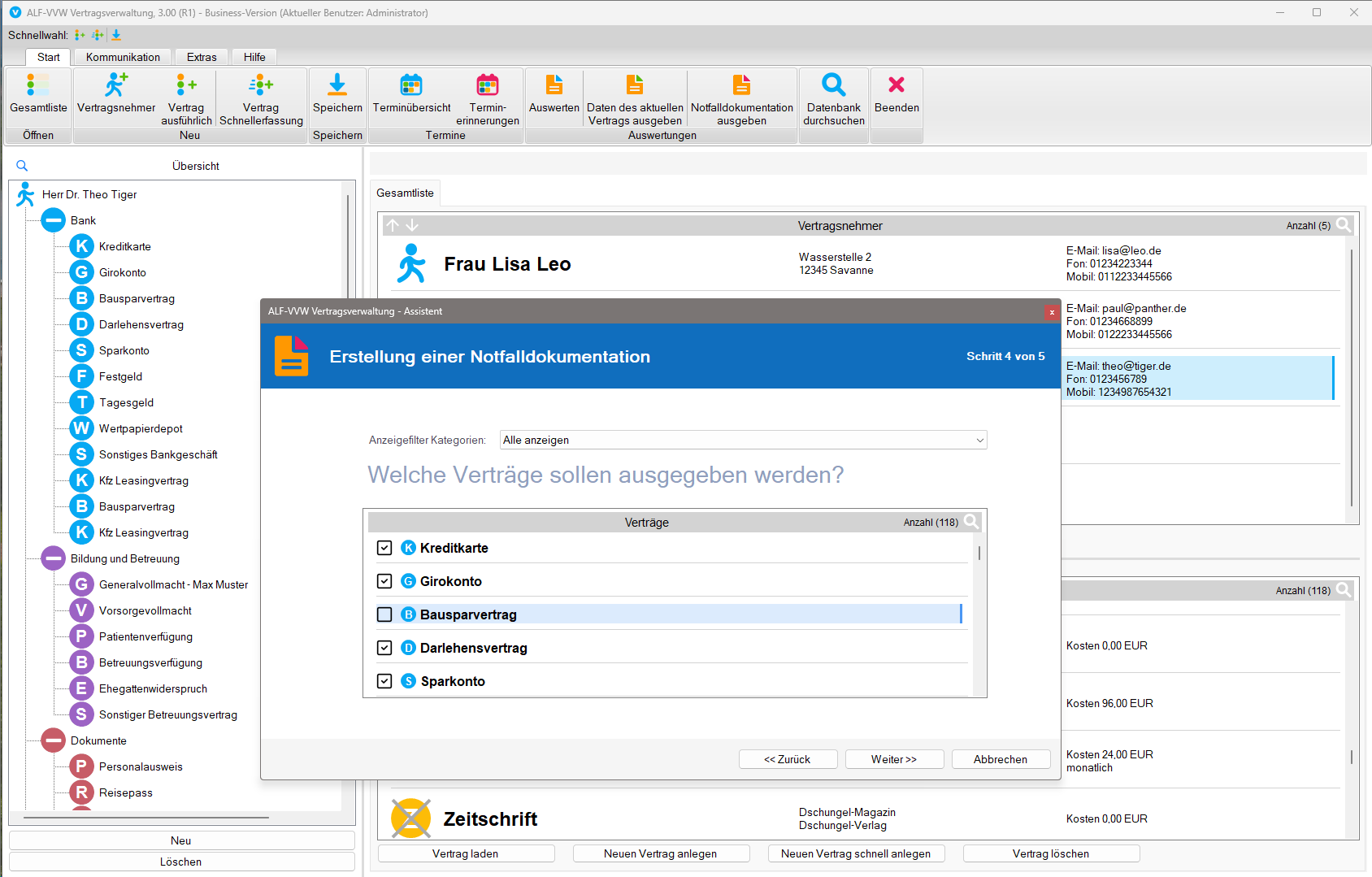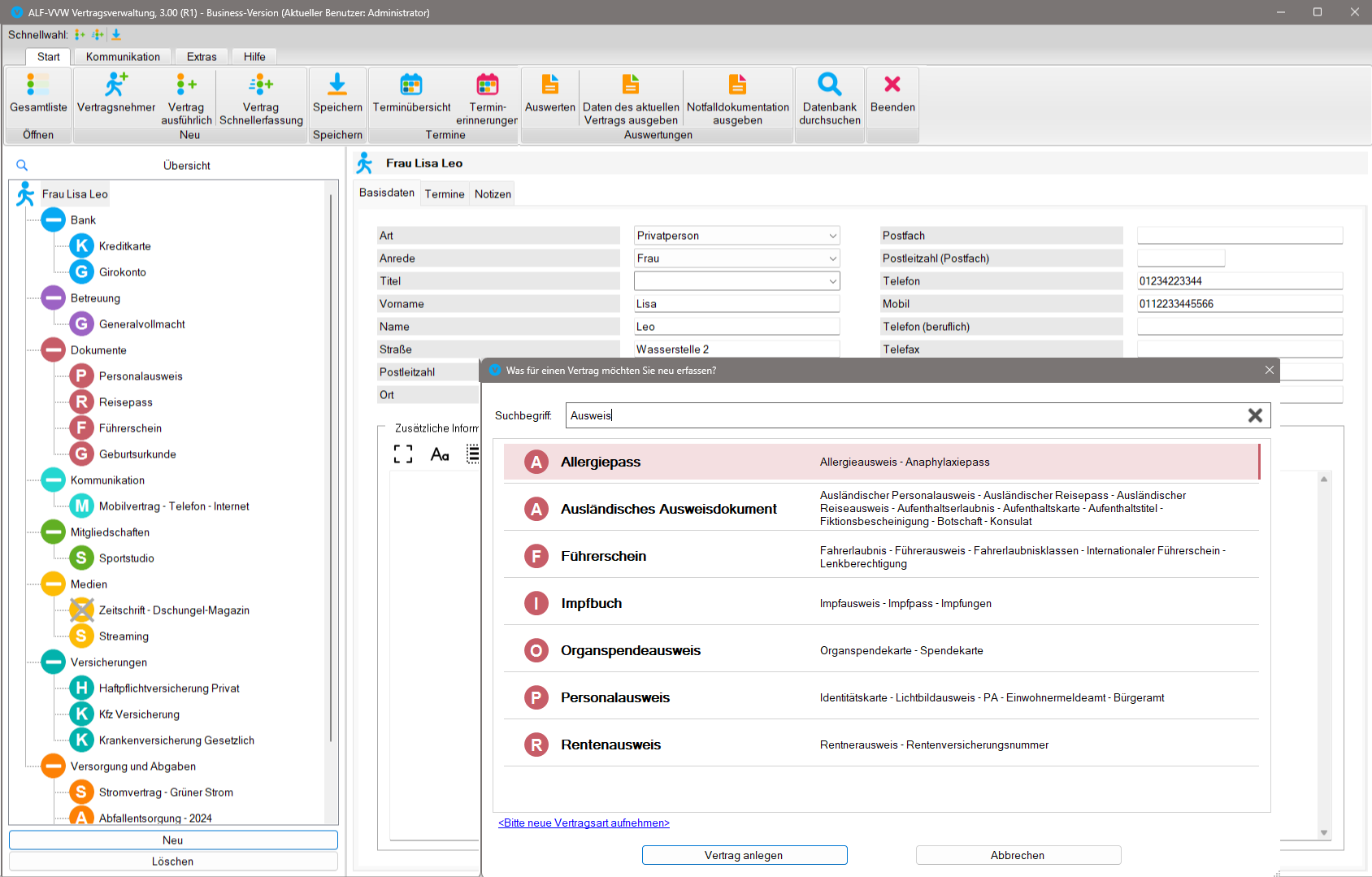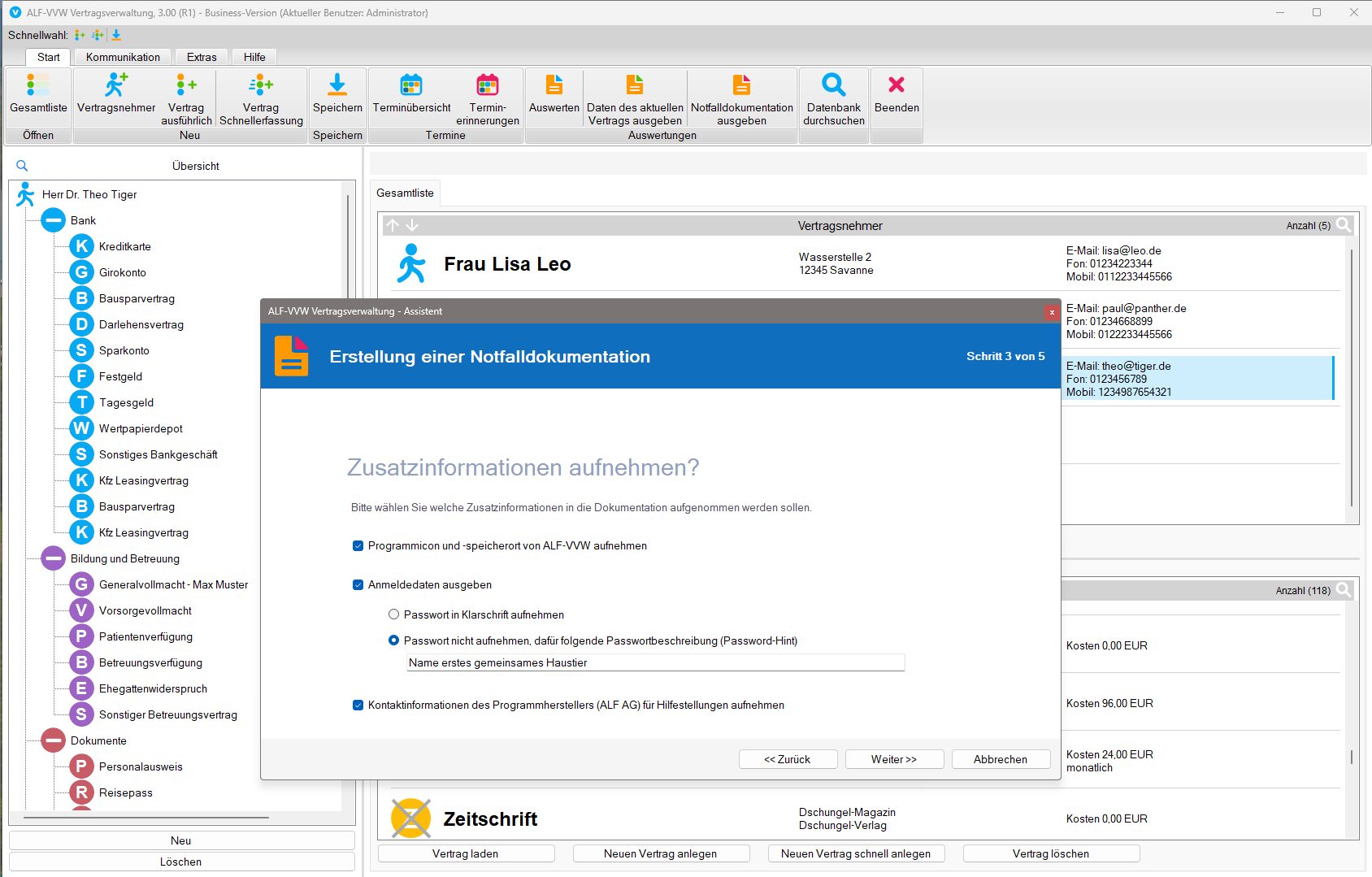 Diese Seite zeigt Ihnen ein paar Bilder aus der Software.